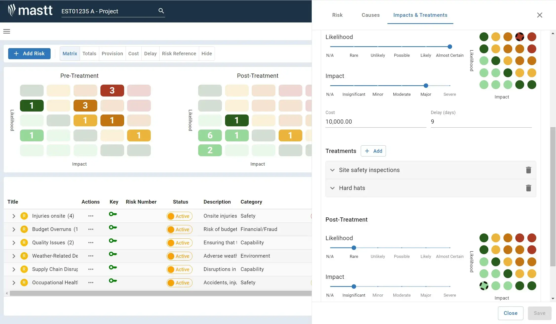 Create clear risk reports with software that tracks threats, impacts, treatments, and project risk trends in real time.